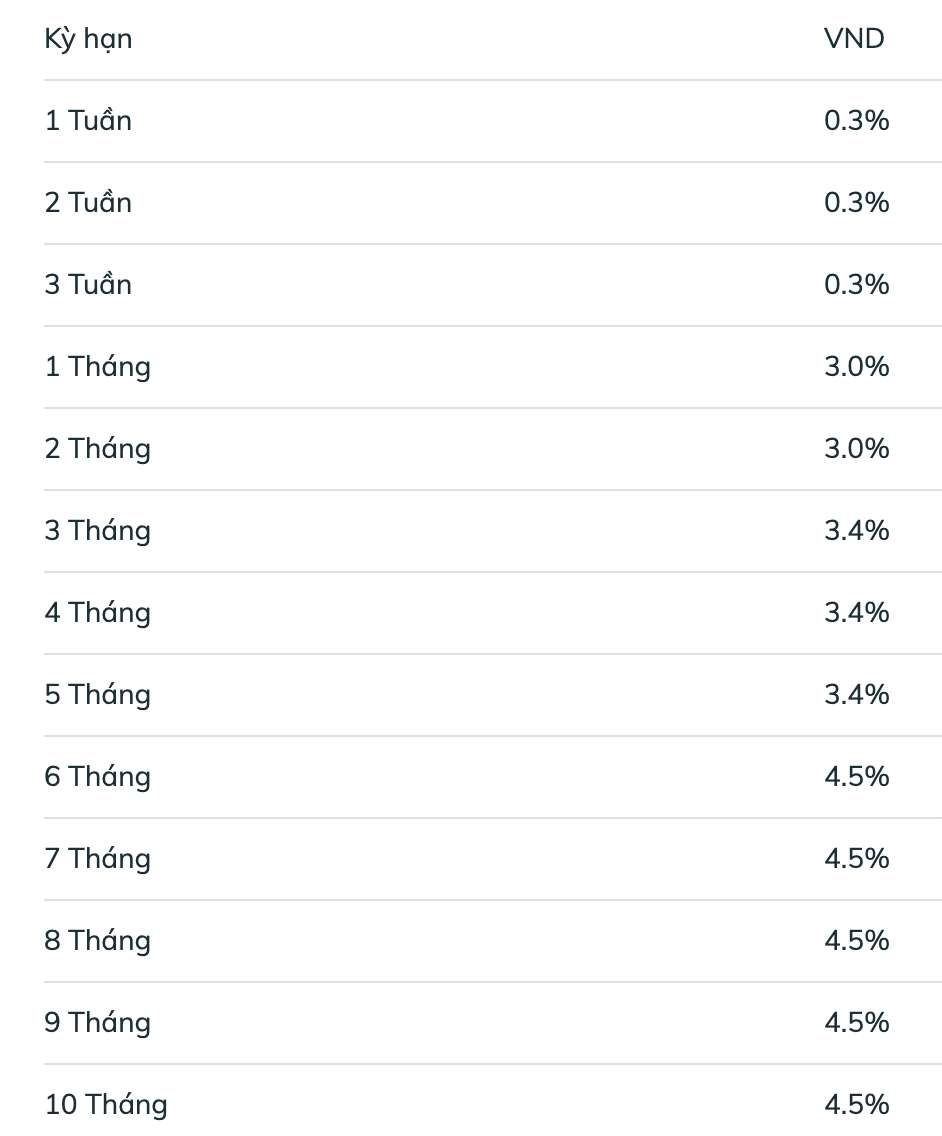 According to a survey by Lao Dong, BIDV is listing savings interest rates for individual customers for terms of 1 or 2 months at 3%/year. For terms of 3-5 months, BIDV lists interest rates at 3.4%/year.