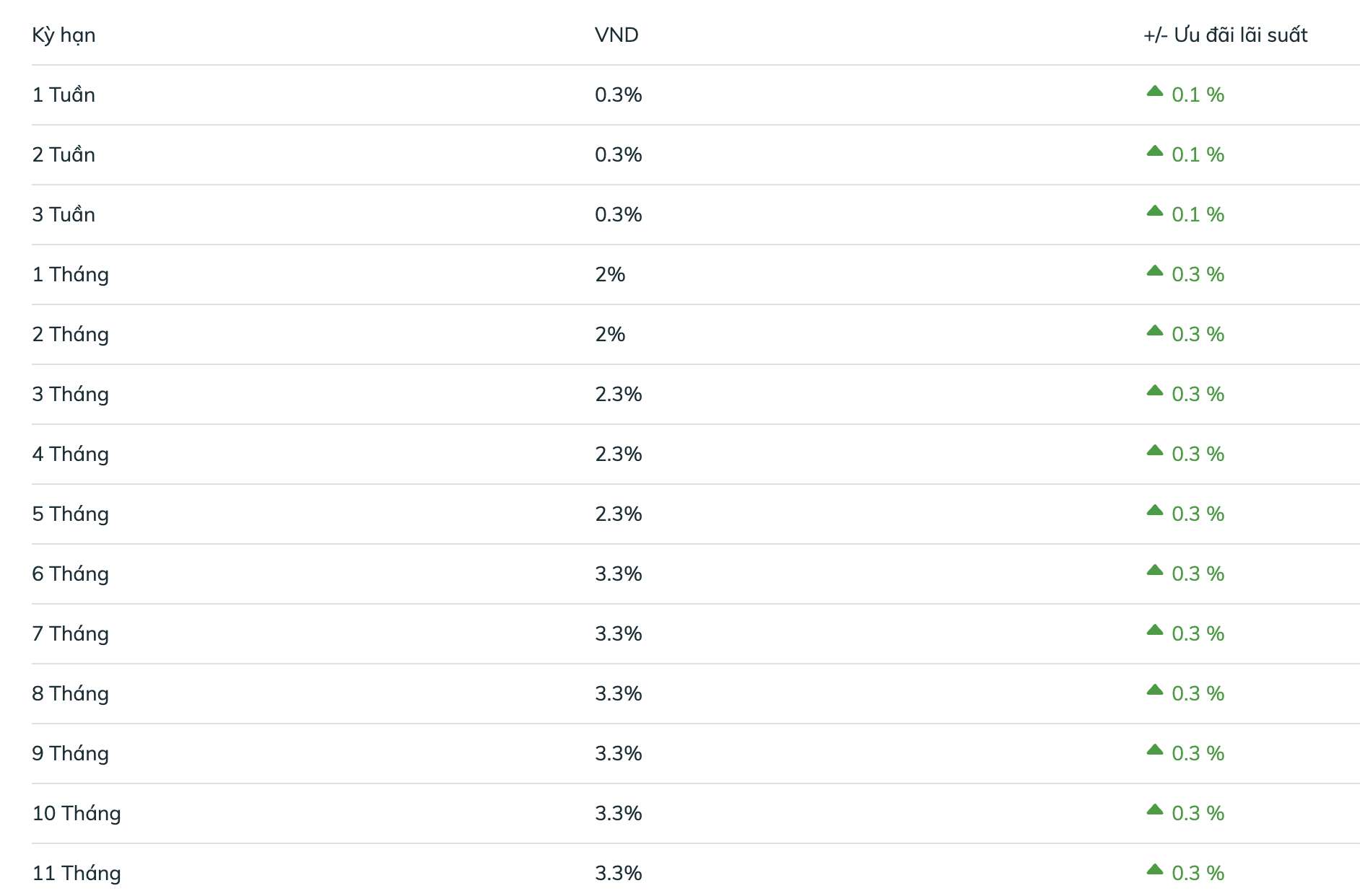 According to a survey by Lao Dong, BIDV is listing savings interest rates for individual customers with 1 and 2 month terms at 2%/year. For 3 - 5 month terms, BIDV lists interest rates at 2.3%/year.