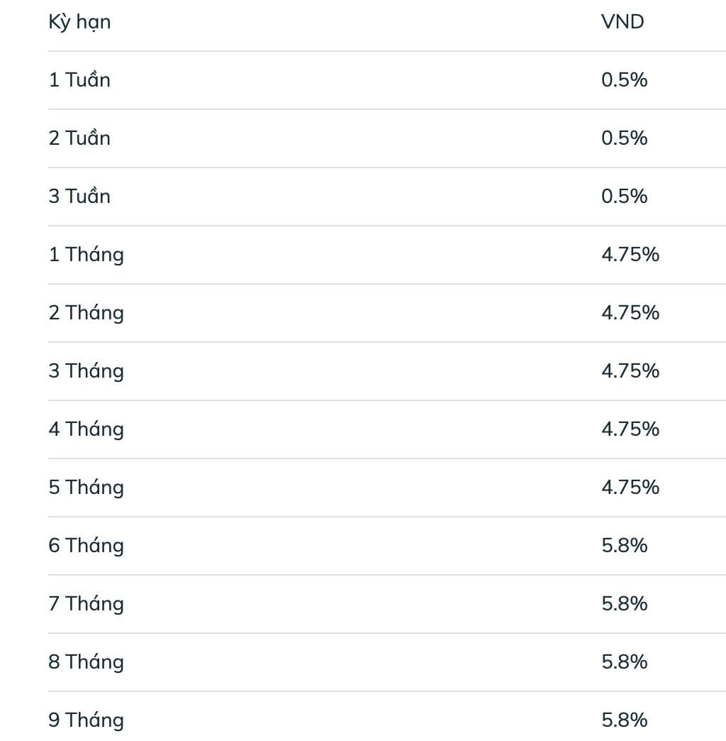 According to Lao Dong's survey on April 20, 2026, BIDV lists interest rates for 1-3 weeks at 0.5%/year. Savings interest rates for individual customers with terms of 1-5 months are 4.75%/year. Savings interest rates at BIDV for terms of 6-11 months are 5.8%/year. Customers depositing money for 12-18 months receive an interest rate of 5.9%/year. Customers depositing money for 24-36 months receive an interest rate of 6%/year.
