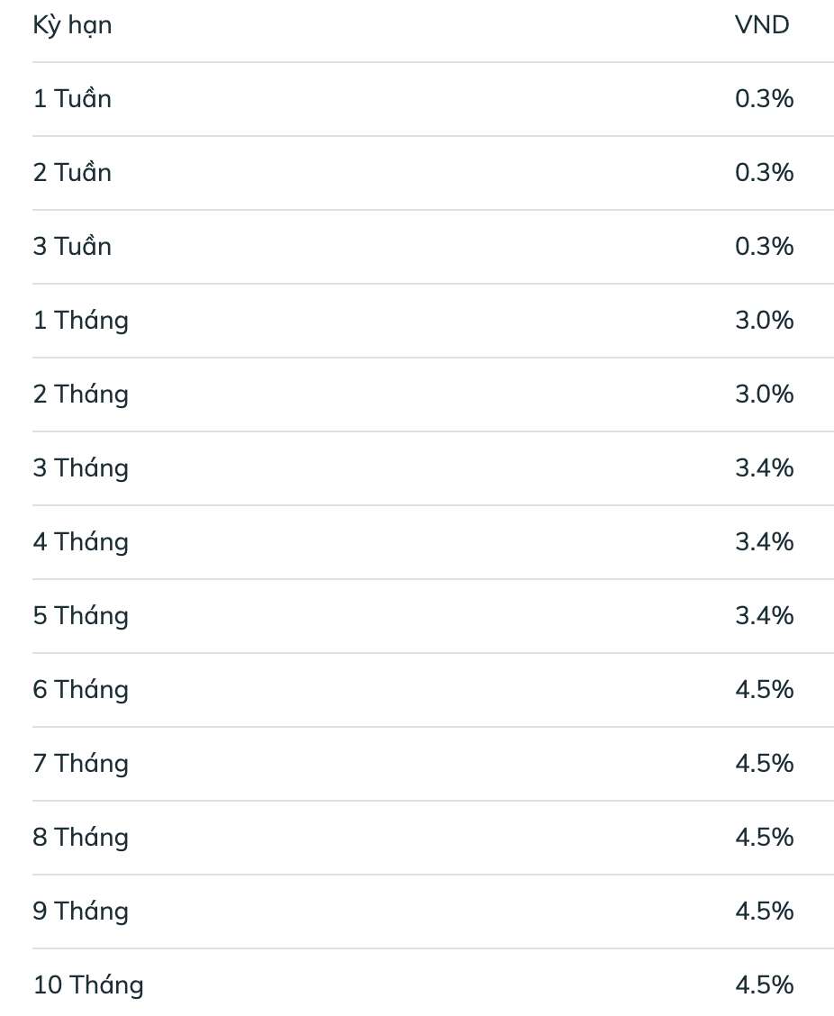 Savings interest rates at BIDV for terms from 6-11 months are at 4.5%/year. Customers depositing for 12 months receive an interest rate of 5.2%/year; from 13-36 months receive the highest interest rate at 5.3%/year.