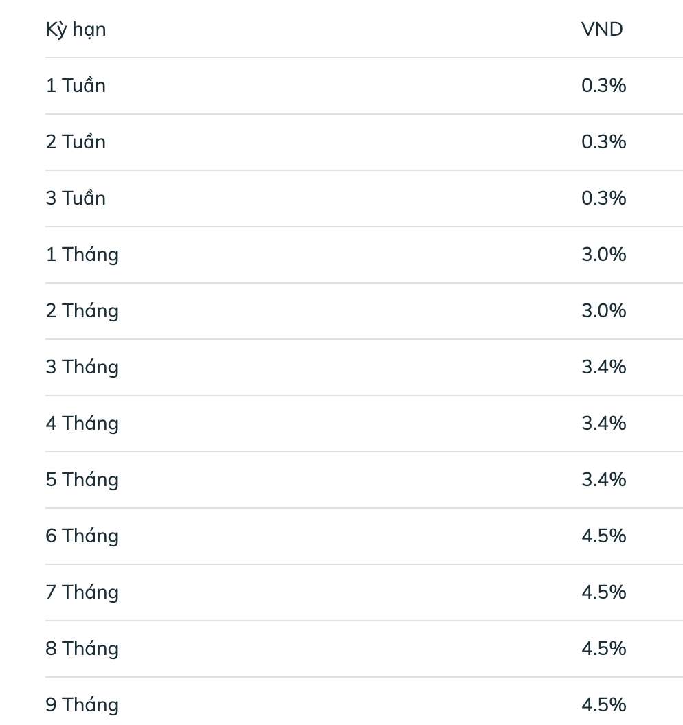 Savings interest rates at BIDV for terms from 6-11 months are at 4.5%/year. Customers depositing for 12 months receive an interest rate of 5.2%/year; from 13-36 months receive the highest interest rate at 5.3%/year.