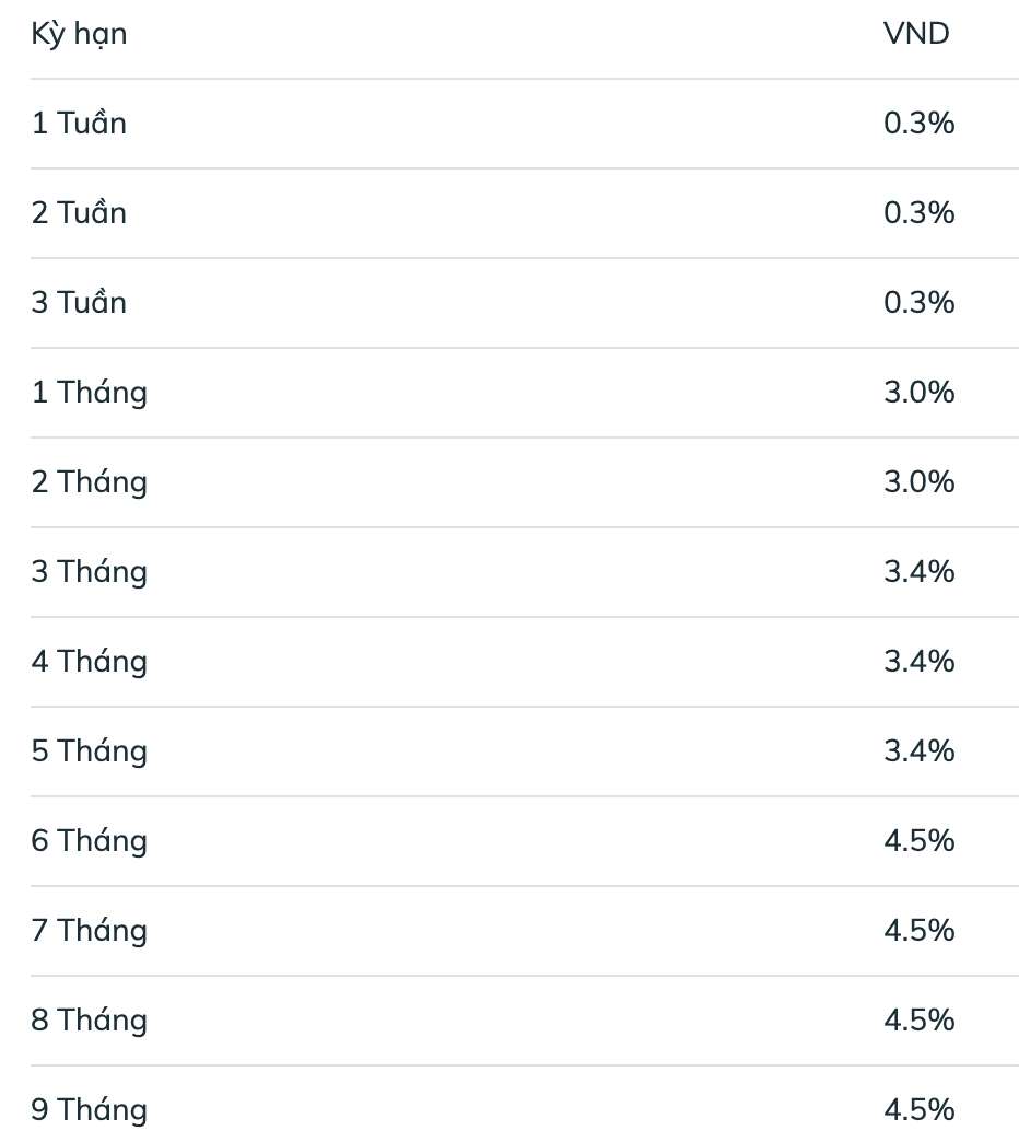 According to a survey by Lao Dong, BIDV is listing savings interest rates for individual customers for terms of 1 or 2 months at 3%/year. For terms of 3-5 months, BIDV lists interest rates at 3.4%/year.