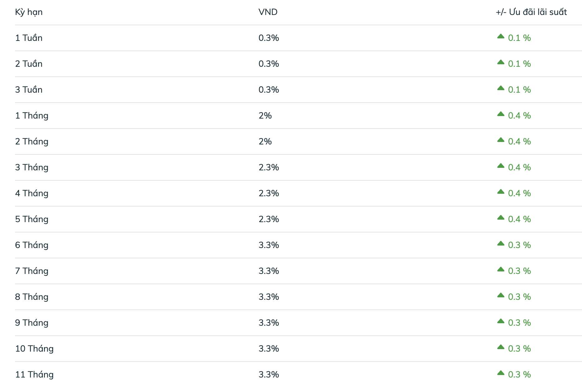 According to a survey by Lao Dong, BIDV is listing savings interest rates for individual customers with 1 and 2 month terms at 2%/year. For 3 - 5 month terms, BIDV lists interest rates at 2.3%/year.
