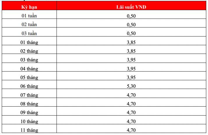 HDBank is listing with an interest rate of 8.1%/year for a 13-month term and 7.7% for a 12-month term, with a minimum balance of VND500 billion.