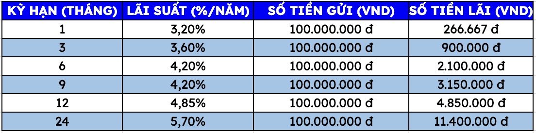 Thus, depositing 100 million VND at MBBank, customers can receive the highest interest rate as follows (applicable to individual customers paying the following interest):