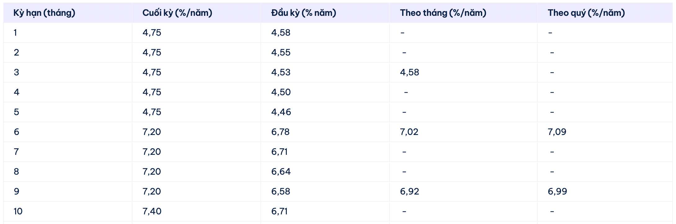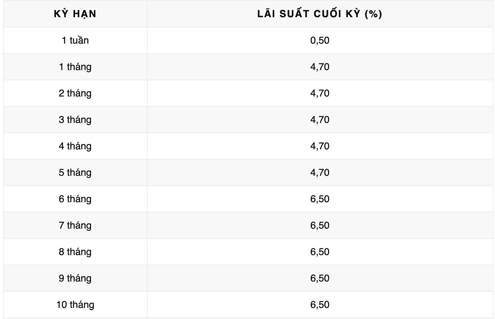 Vikki Bank is listing the highest interest rate for a 12-month term at 6.6% when individual customers deposit money online and receive interest at the end of the term. Currently, Vikki Bank is listing the highest interest rate at 6.7%/year for a 13-month term.