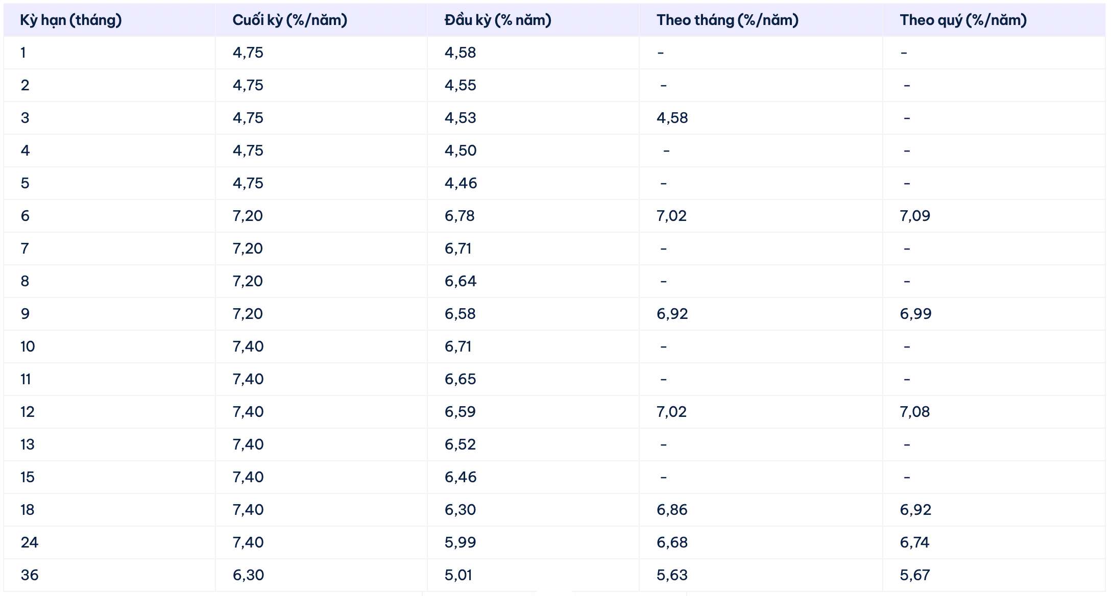 VCBNeo is listing the highest interest rate for a 12-month term at 7% when individual customers deposit money online and receive interest at the end of the term. This is also the highest interest rate Vikki Bank is listing, applied from a term of 6-60 months.