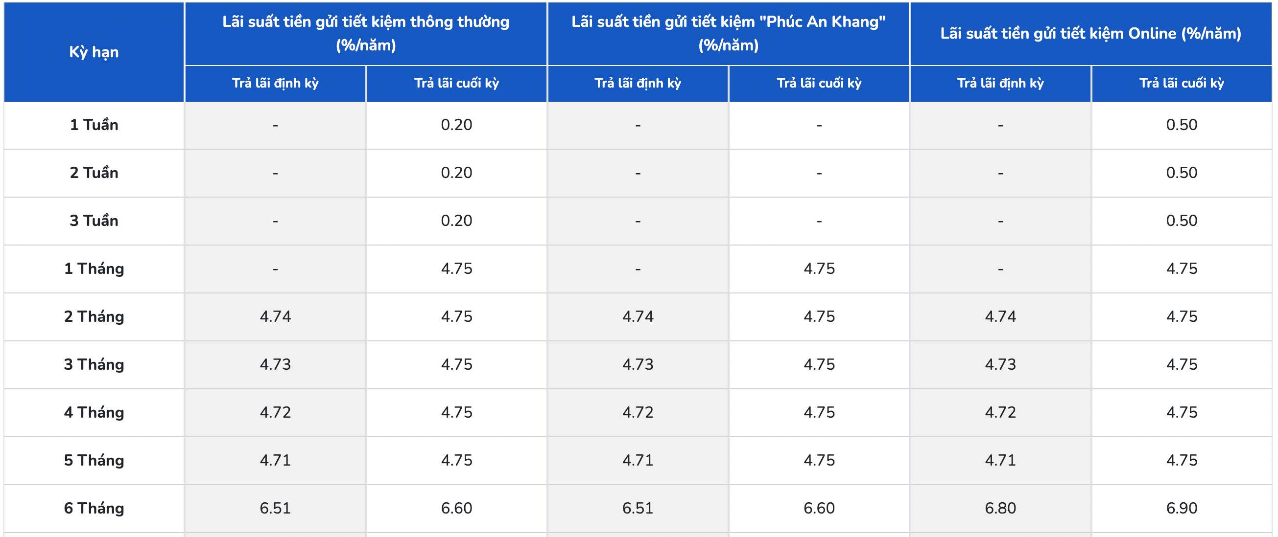 BAC A BANK is listing the highest interest rate for a 12-month term at 7.1% when individual customers deposit money online and receive interest at the end of the term. This is also the highest interest rate BAC A BANK is listing.