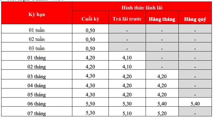 Following suit, HDBank with an interest rate of 7.7% for a 12-month term, conditions for maintaining a minimum balance of 500 billion VND. Under normal conditions, HDBank lists the highest 12-month interest rate at 5.8% when customers deposit money online and 5.7% when depositing money at the counter.