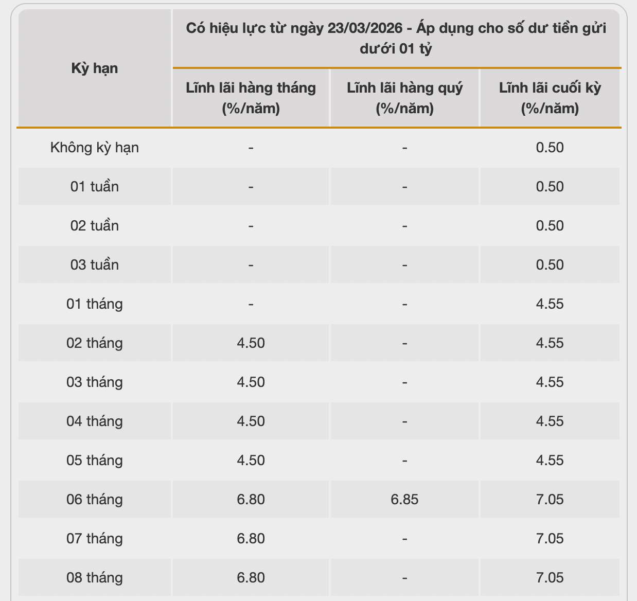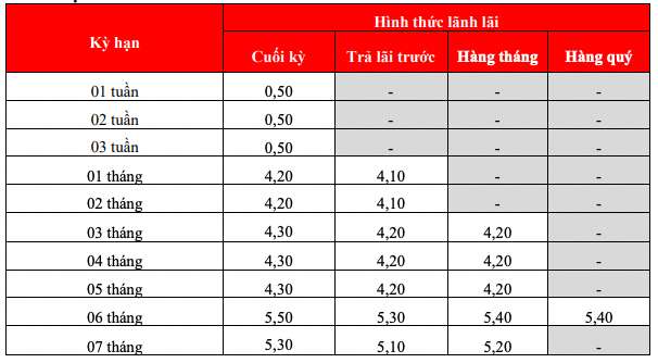 Following suit, HDBank with an interest rate of 7.7% for a 12-month term, conditions for maintaining a minimum balance of 500 billion VND. Under normal conditions, HDBank lists the highest 12-month interest rate at 5.8% when customers deposit money online and 5.7% when depositing money at the counter.