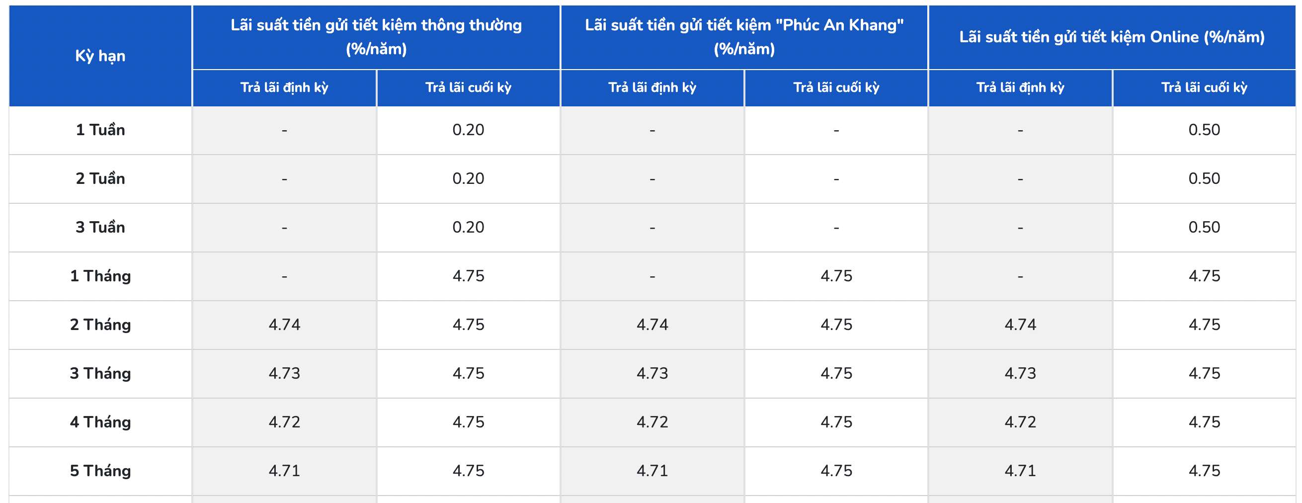 BAC A BANK is listing the highest interest rate for a 12-month term at 7.1% when individual customers deposit money online and receive interest at the end of the term. Currently, BAC A BANK is listing the highest interest rate at 7.1%/year for terms from 12-36 months.