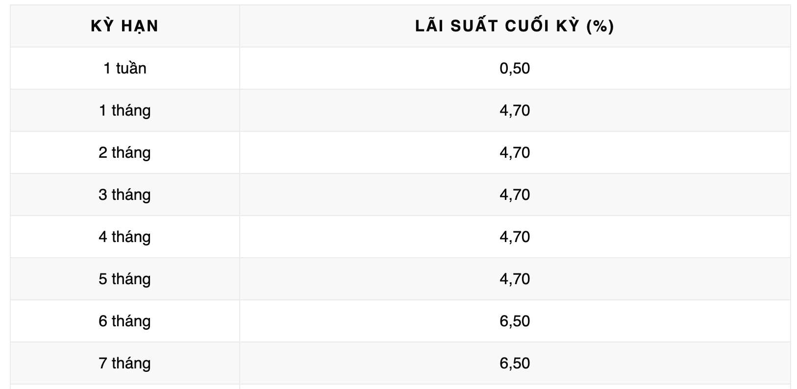 Vikki Bank is listing the highest interest rate for a 12-month term at 6.6% when individual customers deposit money online and receive interest at the end of the term. Currently, Vikki Bank is listing the highest interest rate at 6.7%/year for a 13-month term.