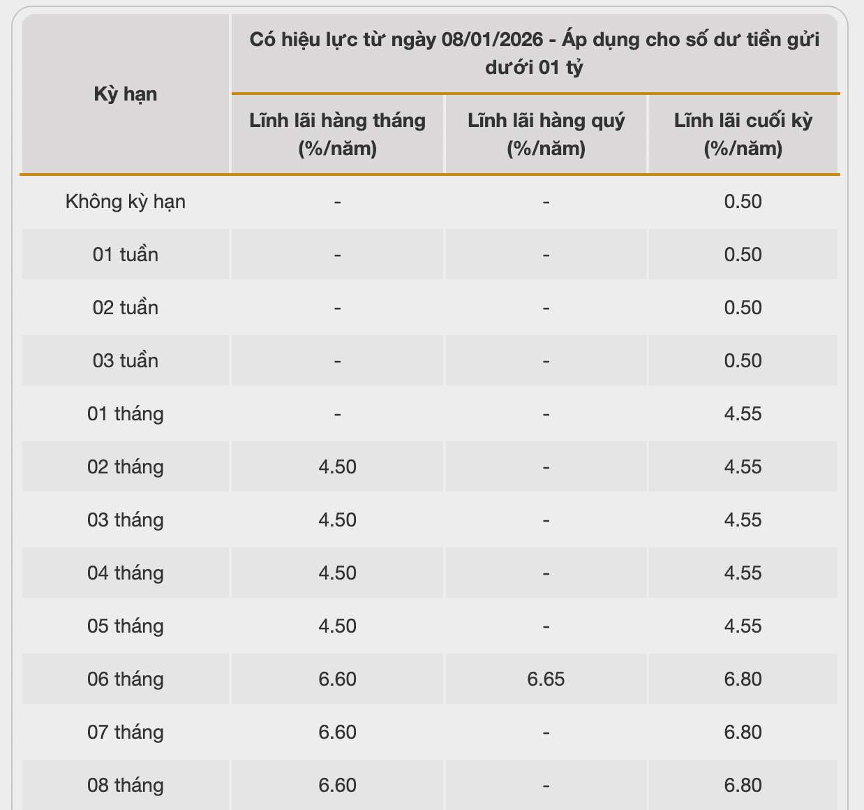 According to a survey by Lao Dong Newspaper reporters on January 20, 2026, PVcomBank's interest rate is currently the highest in the market, up to 9% for a 13-month term with a minimum deposit of 2,000 billion VND. In normal conditions, PVcomBank lists the highest 13-month interest rate at 6.3% when customers deposit money online and 6% when depositing money at the counter.