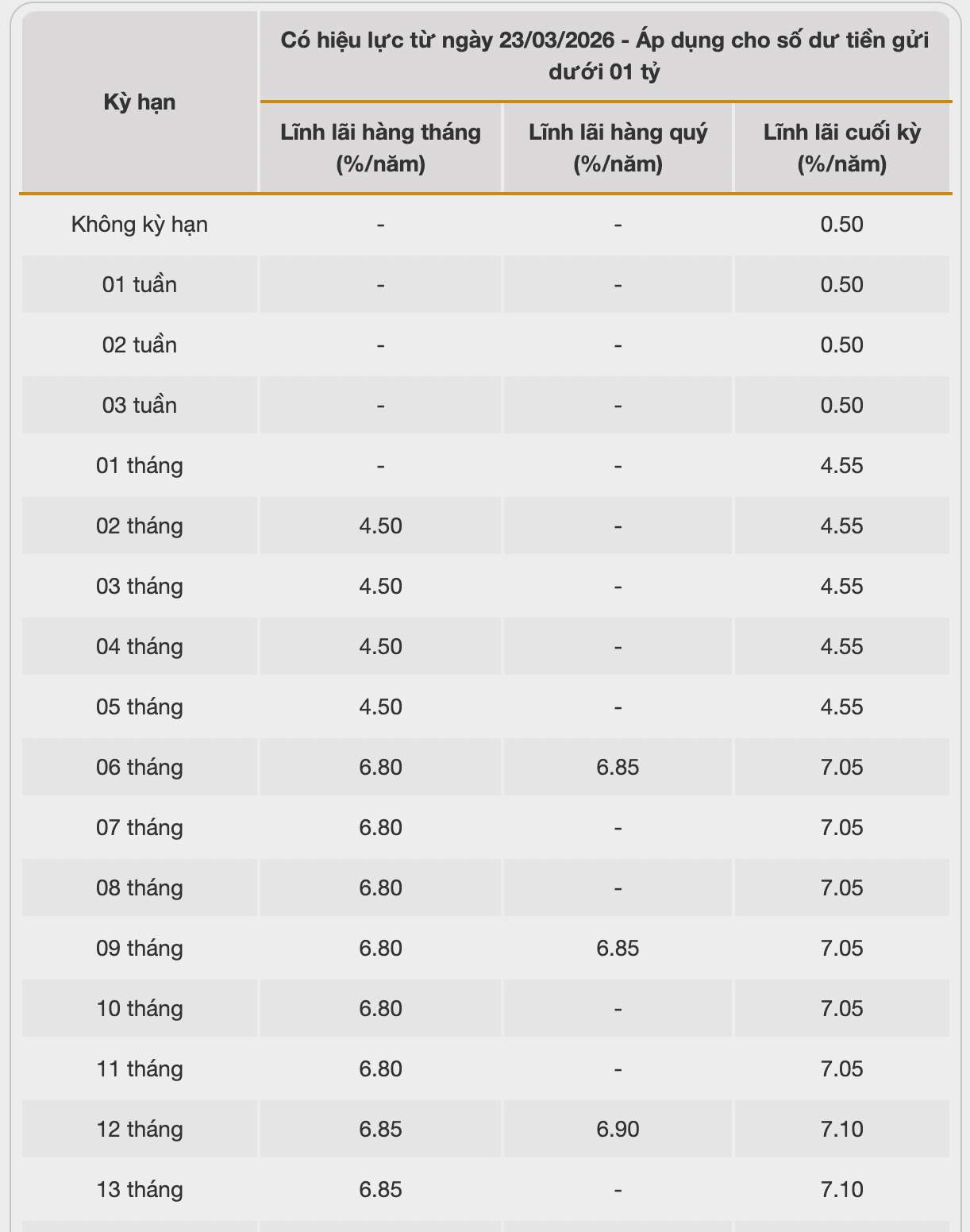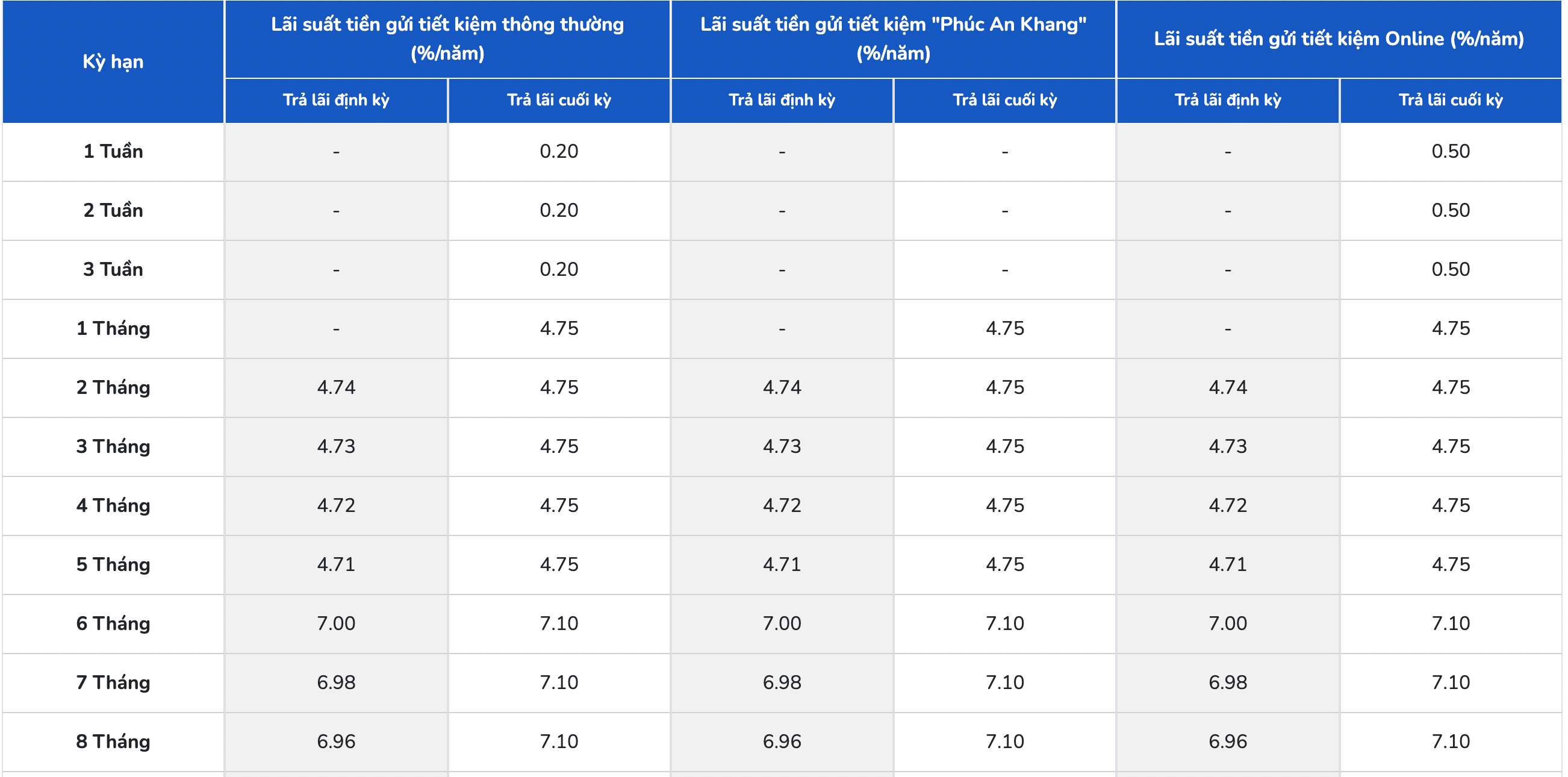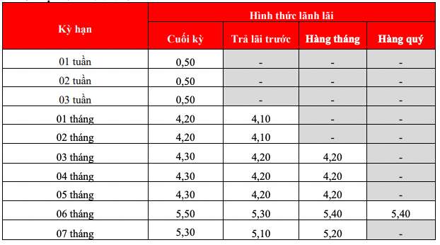 Bac A Bank is listing the highest interest rate for a 13-month term at 7.1% when individual customers deposit money online and receive interest at the end of the term.
