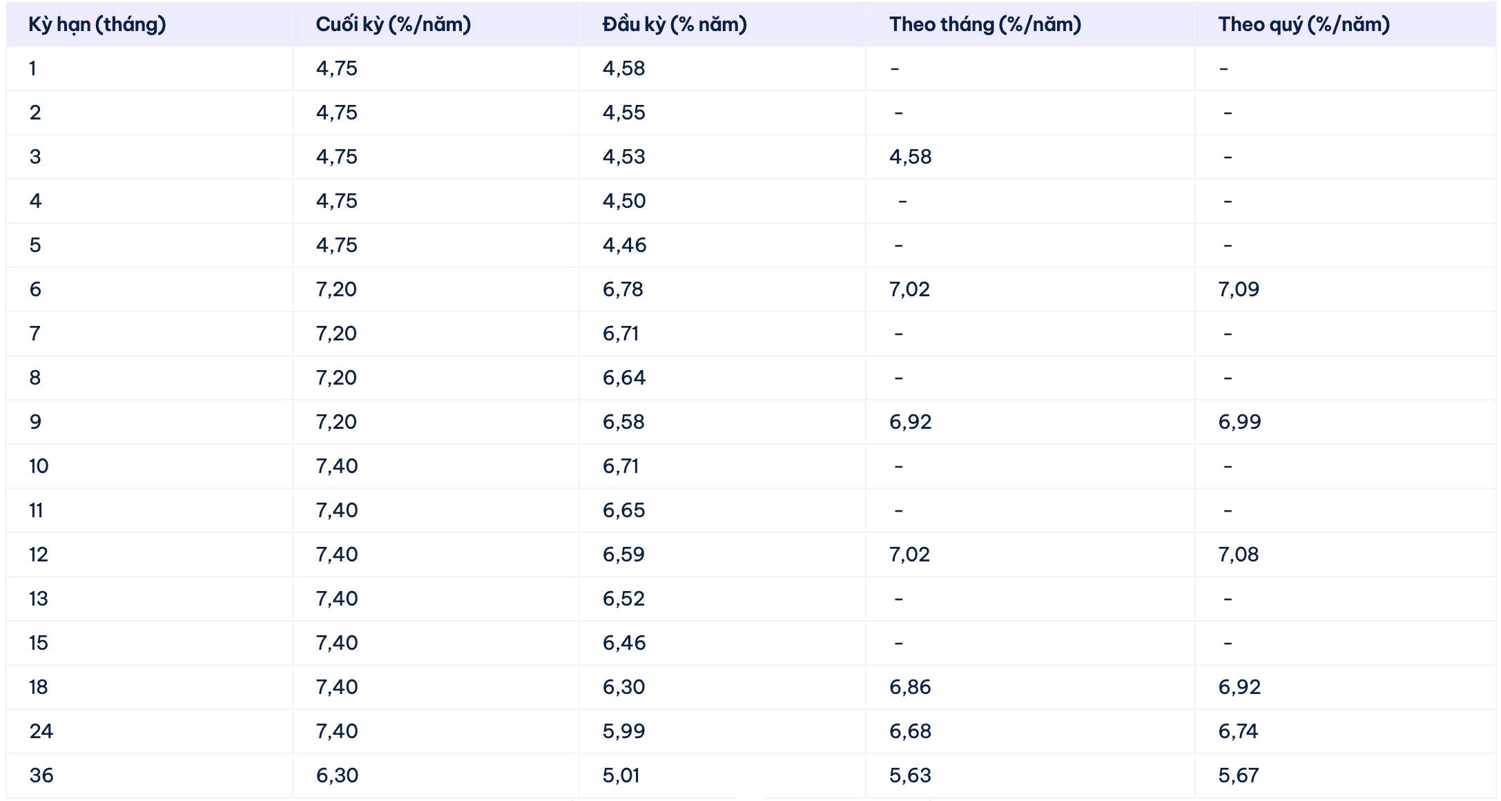 * Interest rate information is for reference only and may change in each period. Please contact the nearest bank transaction point or hotline for specific advice.