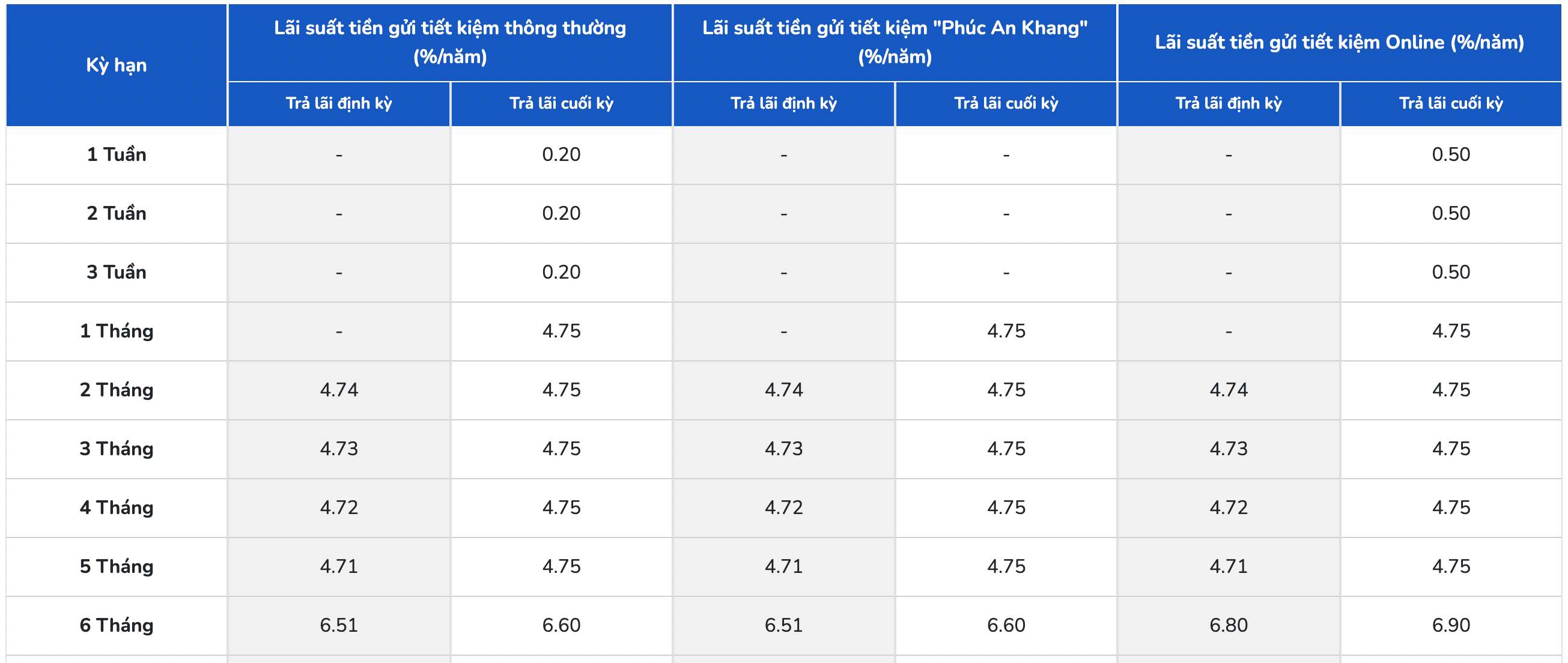 PGBank lists the highest interest rate for a 6-month term at 6.9%/year when customers receive interest at the end of the term. Currently, PGBank is listing the highest interest rate at 7%/year for terms of 12 and 13 months.