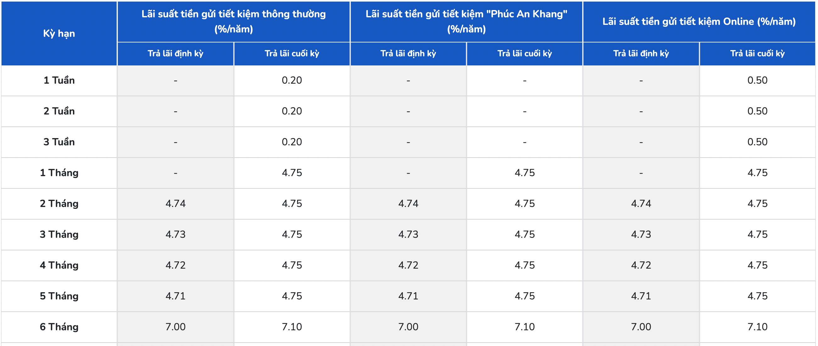 PGBank lists the highest interest rate for a 6-month term at 7.1%/year when customers receive interest at the end of the term. Currently, PGBank is listing the highest interest rate at 7.2%/year for terms of 12 and 13 months.
