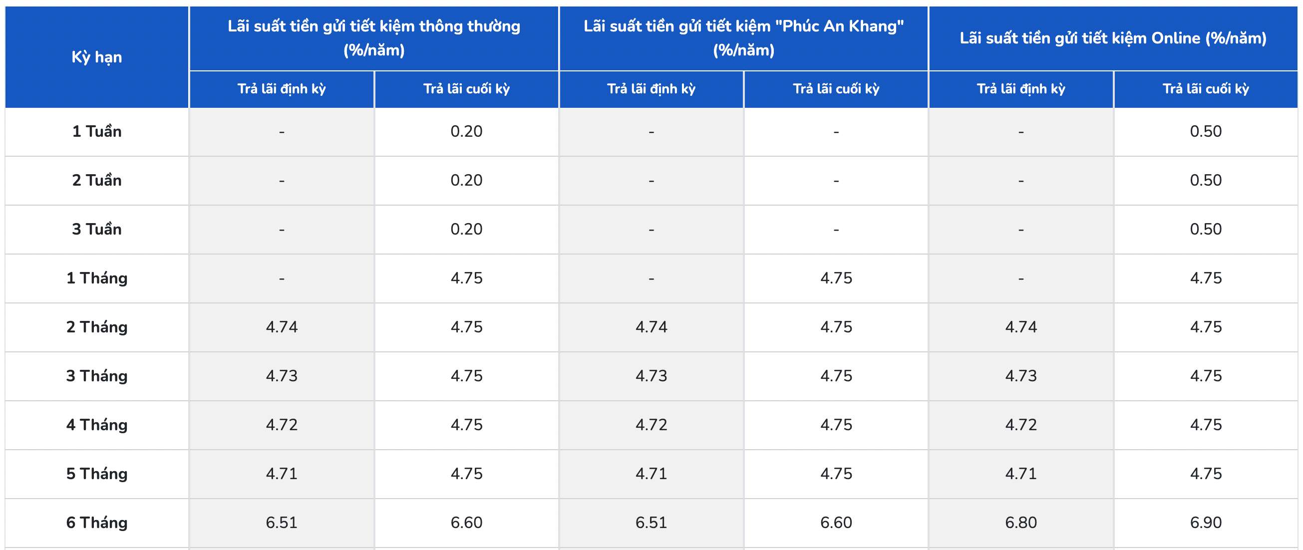 PGBank lists the highest interest rate for a 6-month term at 6.9%/year when customers receive interest at the end of the term. Currently, PGBank is listing the highest interest rate at 7%/year for terms of 12 and 13 months.