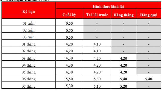 Bac A Bank is listing the highest interest rate for a 13-month term at 6.85% when individual customers deposit money online and receive interest at the end of the term.