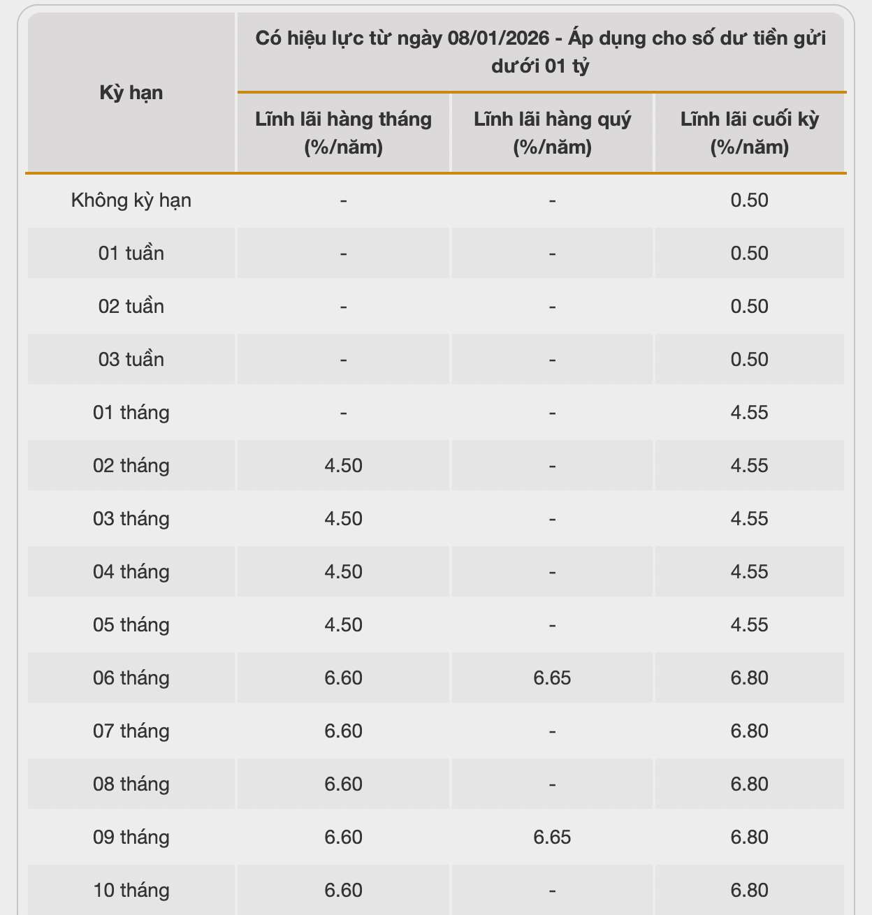 Bac A Bank is listing the highest interest rate for a 13-month term at 6.85% when individual customers deposit money online and receive interest at the end of the term. Currently, Bac A Bank is listing the highest interest rate at 6.9%/year for terms from 18-36 months.