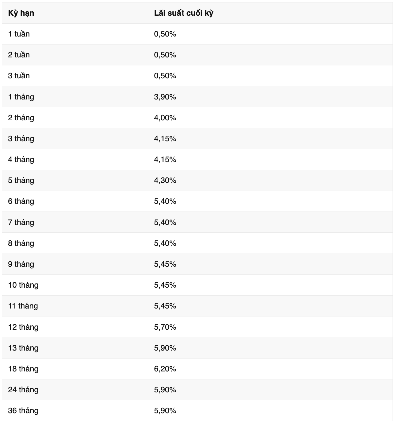 According to the record on October 14, 2025, Vikki Bank will apply a new deposit interest rate table for term deposits in VND (effective from October 8, 2025). VikkiBank's highest interest rate is 6.20%/year (18-month term), maintaining a competitive position in the market.