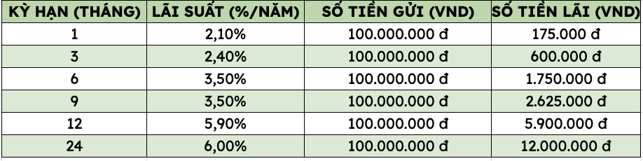 Thus, depositing 100 million VND at VietinBank, customers can receive the highest interest rate as follows (applied to individual customers depositing directly at the counter):