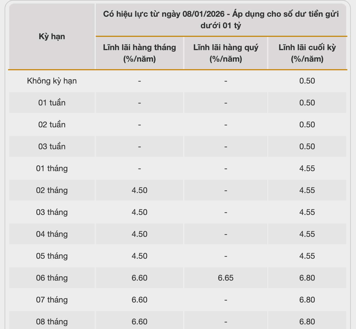 Vikki Bank is listing the highest interest rate for a 12-month term at 6.6% when individual customers deposit money online, receiving interest at the end of the term. Currently, Vikki Bank is listing the highest interest rate at 6.7%/year for a 13-month term.