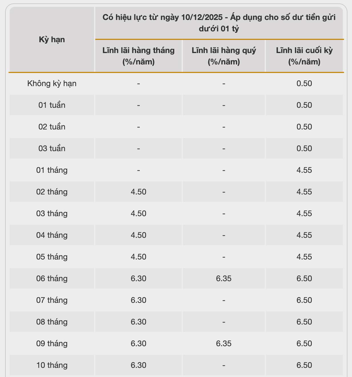 Under normal conditions, PVcomBank lists interest rates at 5.8%/year when customers deposit money in a traditional way. Customers depositing money online receive an interest rate of 6.3%.