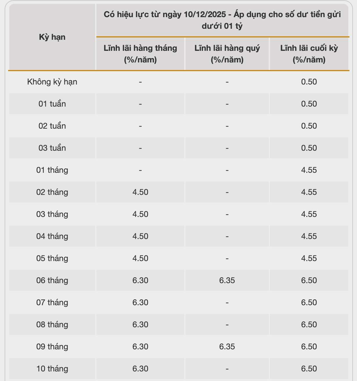 Bac A Bank is listing the highest interest rate for a 13-month term at 6.6% when individual customers deposit money online, receiving interest at the end of the term. Currently, Bac A Bank is listing the highest interest rate at 6.7%/year for terms from 18-36 months.