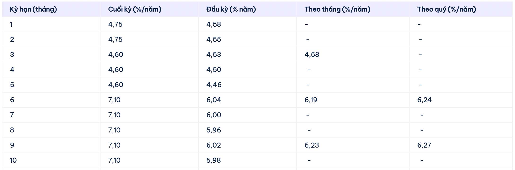 * Interest rate information is for reference only and may change in each period. Please contact the nearest bank transaction point or hotline for specific advice.