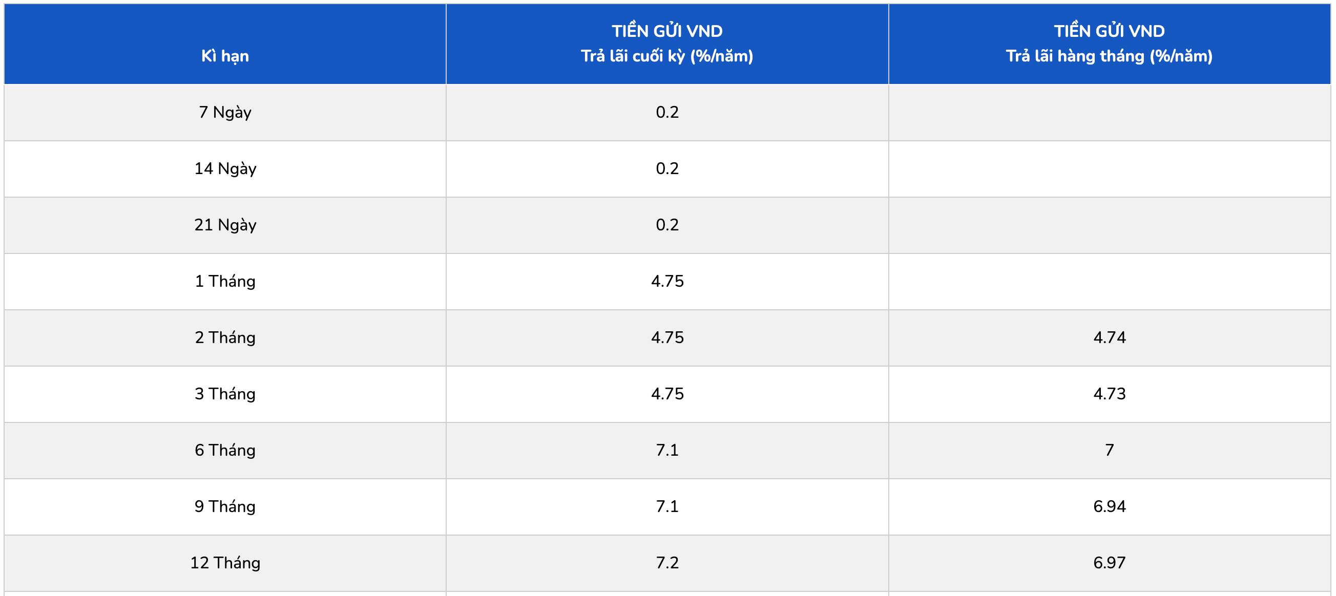 PGBank is listing the highest interest rate for a 13-month term at 7.2%/year when paying interest at the end of the term; in case of monthly interest payment, customers receive an interest rate of 6.95%/year.