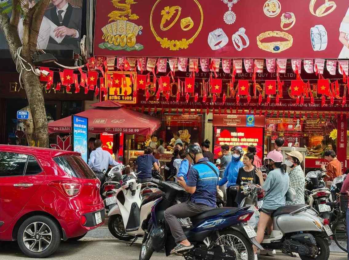 On September 6, domestic gold prices continued to increase sharply. In Hanoi, many gold shops recorded crowded people coming to transact.
