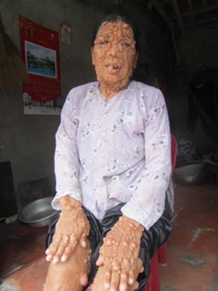 Cuộc đời bất hạnh từ lúc mới sinh ra, chân trái của bà bị tật, đi lại khó khăn. Đến năm 12 tuổi, hai cánh tay của bà bỗng nhiên xuất hiện những mụn thịt nhỏ li ti nhưng không thấy có cảm giác ngứa ngáy hay đau đớn. Nhưng mỗi ngày các mụn thịt ấy lại to dần và lan rộng khắp nơi trên cơ thể, từ khuôn mặt đến các ngón chân, ngón tay. Những u, cục đó cứ chi chít, dày đặc đua nhau trồi lên lớp da mỏng.
