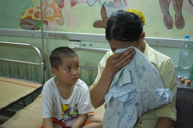 Chị xuống Hà Nội vì con trai út, cháu Đinh Tiến Đạt, chưa tròn 6 tuổi bị ung thư máu, đang điều trị ở Khoa Ung bướu Bệnh viện Nhi Trung ương.
