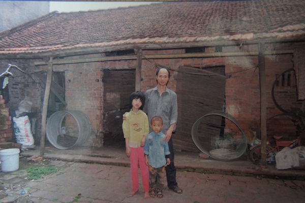 | Ba bố con anh Hiệp bên ngôi nhà tồi tàn ở Phú Xuyên, Hà Nội |