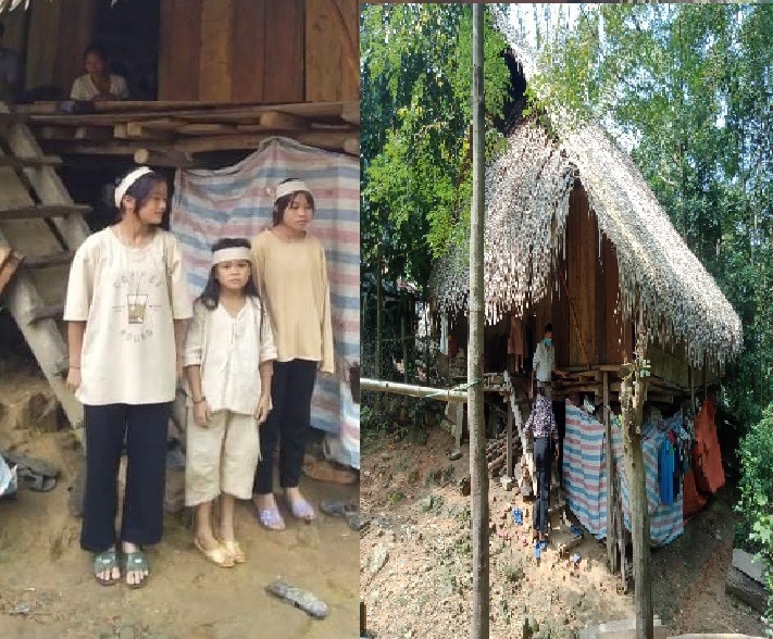 Bố mất vì ung thư hạch, mẹ bị bệnh teo khớp không làm được việc nặng nhưng trong nhà hết sạch cái ăn nên sớm nay chị lên rừng mong hái được mấy củ măng. Căn nhà tạm dột nát, sắp đổ, 3 đứa trẻ cứ quẩn quanh bên di ảnh bố trông đến tội.
