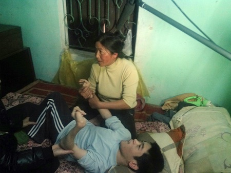 Vinh Long - 19-year-old Dang Hoang Phuc Loc is paralyzed in his hospital bed after a traffic accident, his poor mother is exhausted due to treatment costs.