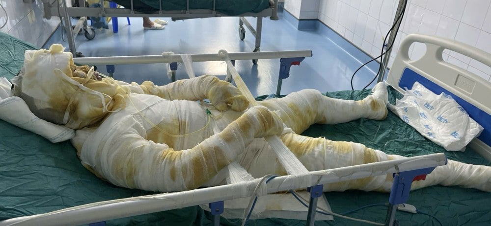 Female worker Nguyen Thi Thanh Tam had a gas explosion that resulted in deep burns over 65% of her body.