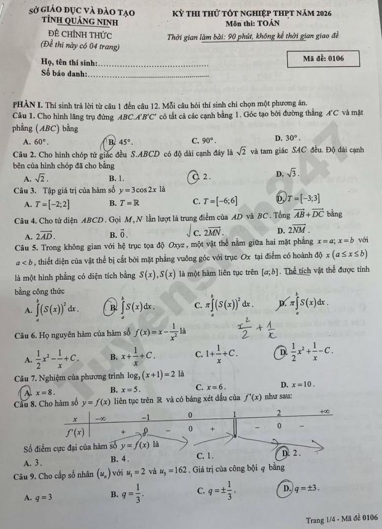 2026 high school graduation mock exam in Mathematics - Quang Ninh Department of Education and Training