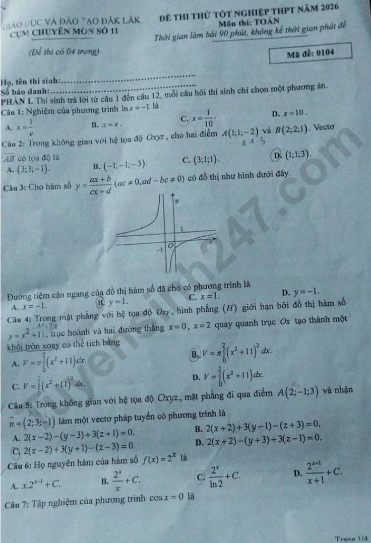 2026 high school graduation mock exam in Mathematics - Specialized cluster 11 Dak Lak