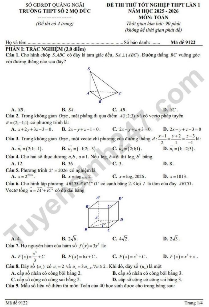 Tutor exam for high school graduation in Mathematics 2026 - High School No. 2 Mo Duc (1st time)