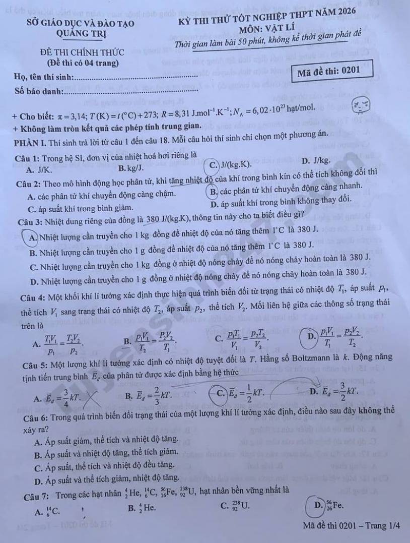 Answers to the 2026 high school graduation mock exam in Physics - Quang Tri Department of Education and Training (Implemented by: Tuyensinh247 Professional Board)