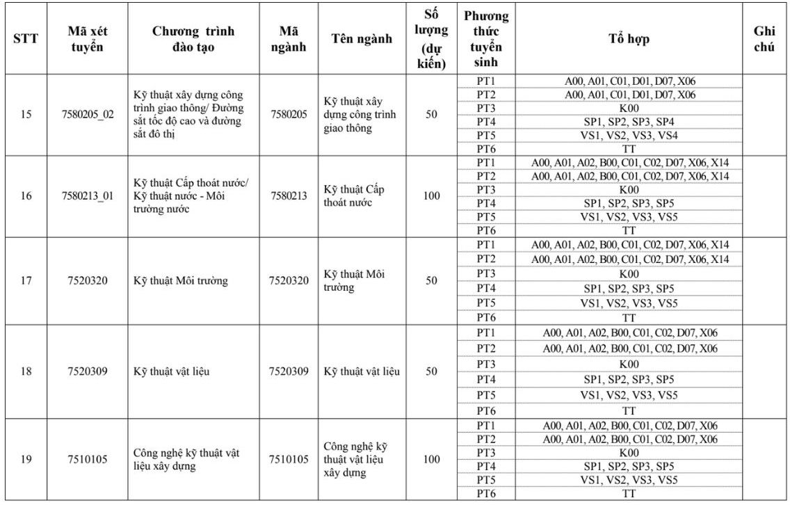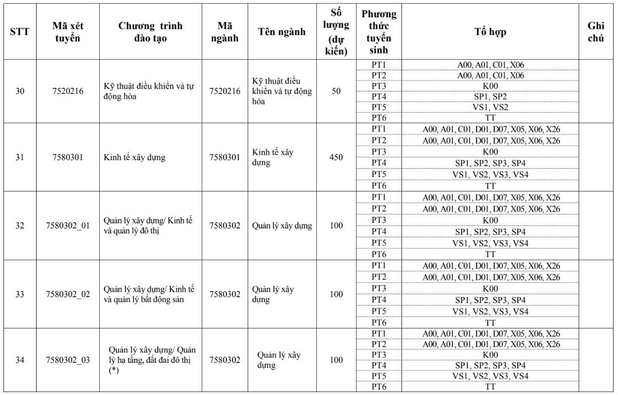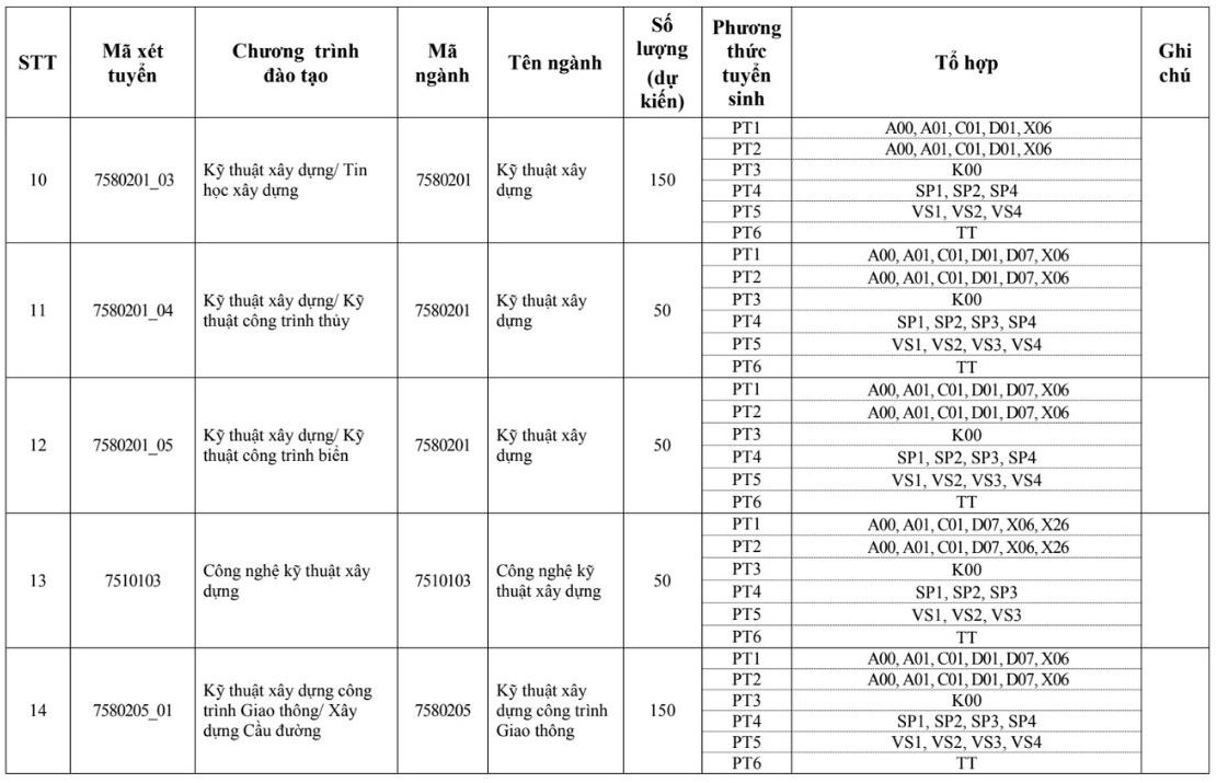 Hanoi University of Civil Engineering has just announced information on regular university admissions expected for 2026. Specific admission methods are as follows: