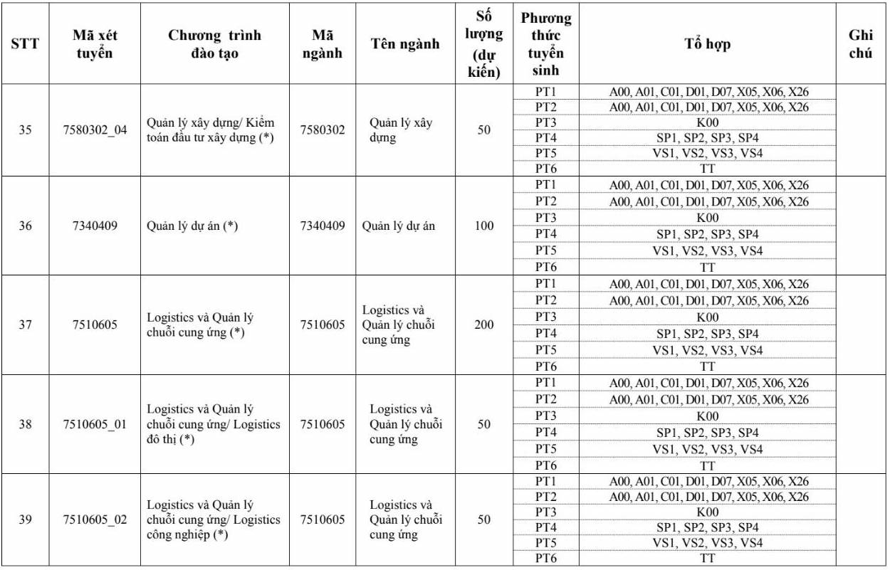 - Admission consideration using the results of the 2026 High School Graduation Exam combined with the results of the 2026 aptitude test (for the Urban Fine Arts major, Architecture and Planning major group and majors under the Art and Design Training Program).