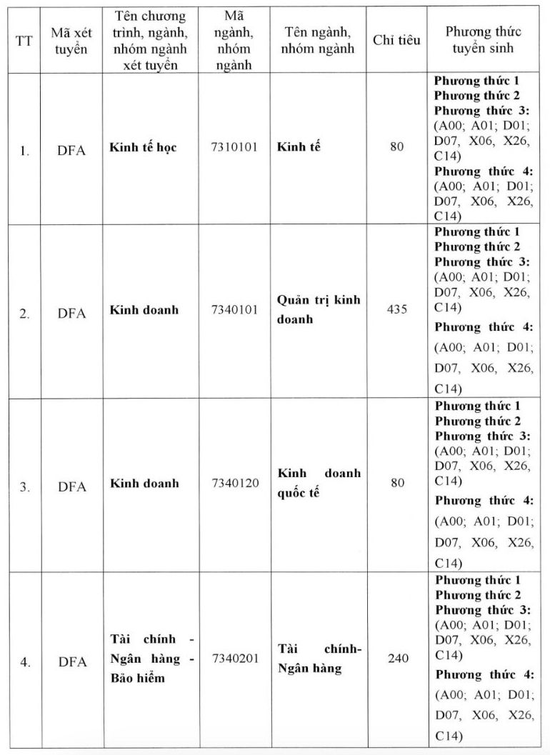 The University of Finance - Business Administration has just announced information on regular university admissions in 2026. Admission methods are as follows: