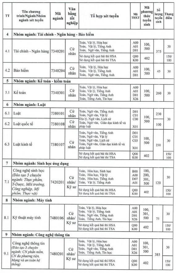- Admission based on competency assessment and thinking assessment exam scores organized by other units - Code 402;