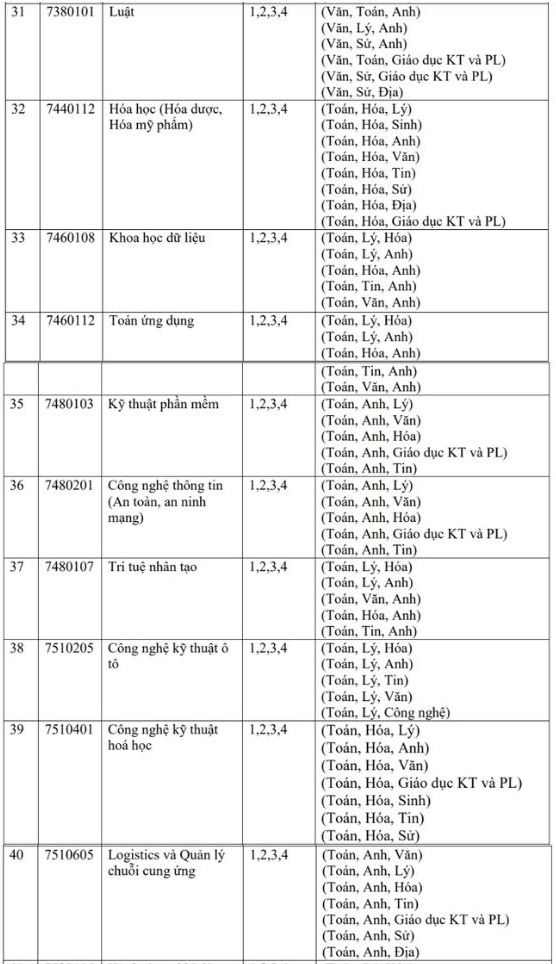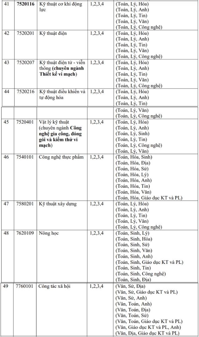 - Method 3 (PT3 - code 402A): Consider the results of the competency assessment (CA) exam of VNU-HCM (teacher training majors do not consider PT3 admission).