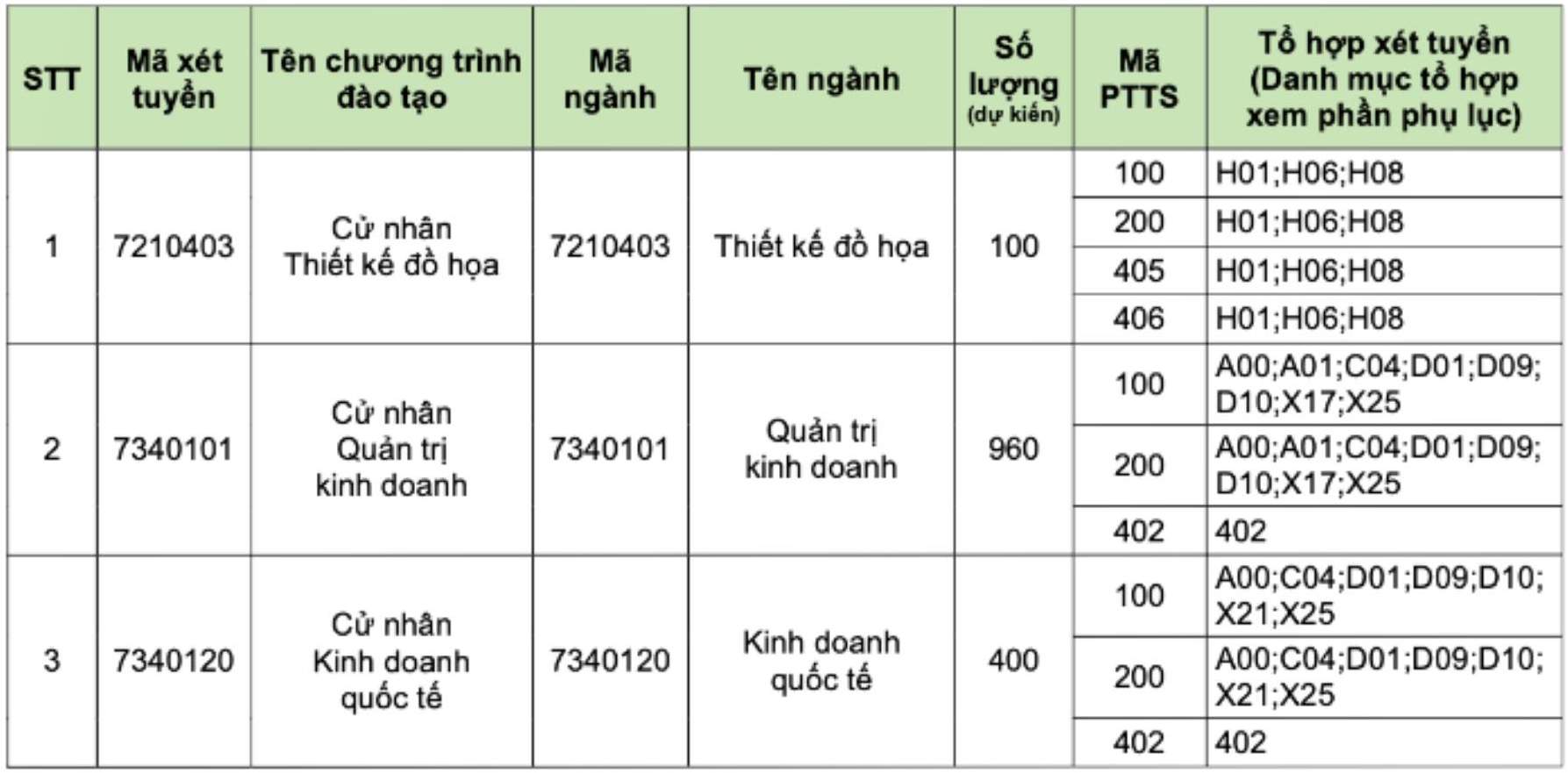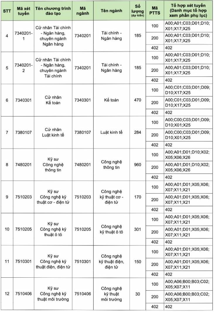 List of admission combinations used by Hanoi University of Business and Technology in the 2026 enrollment season as follows: A00, A01, B00, B03, B08, C00, C01, D07, D08...
