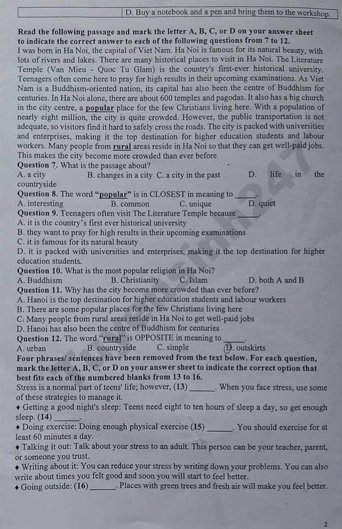Candidates can refer to more mock exam questions for 10th grade high school entrance exams in 2026 HERE.