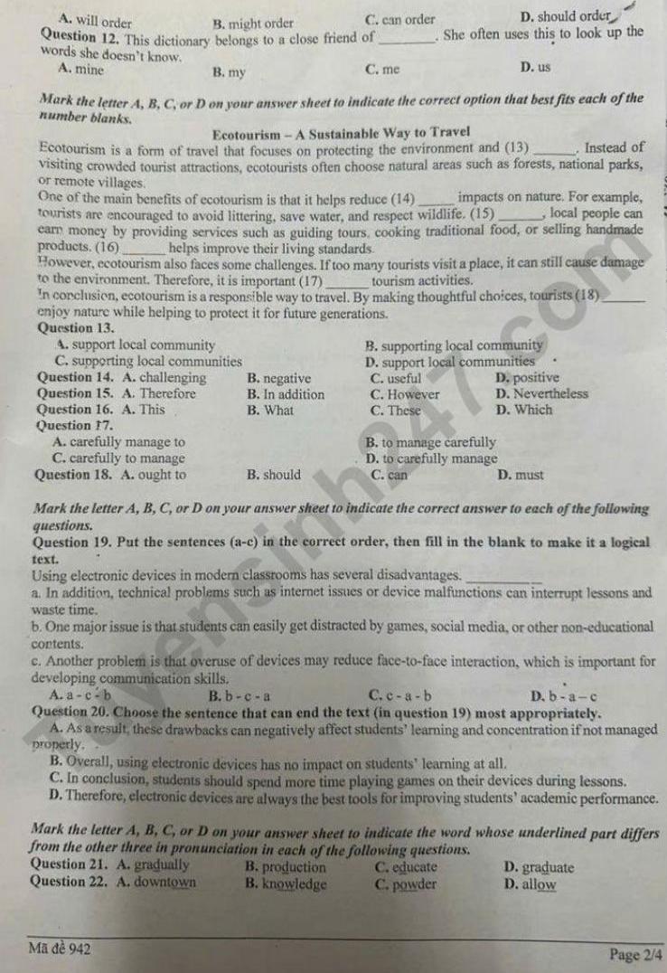 10th grade mock exam for English (2025 - 2026 school year) - Van Dinh commune (2nd time)